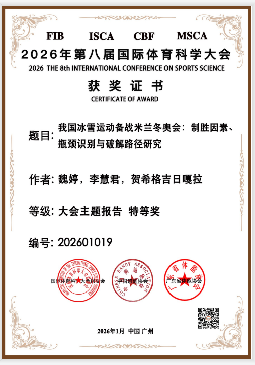 2026年1月2日至3日,第八届国际体育科学大会圆满落幕。本届大会由国际体育科学大会组委会、国...【详细信息】