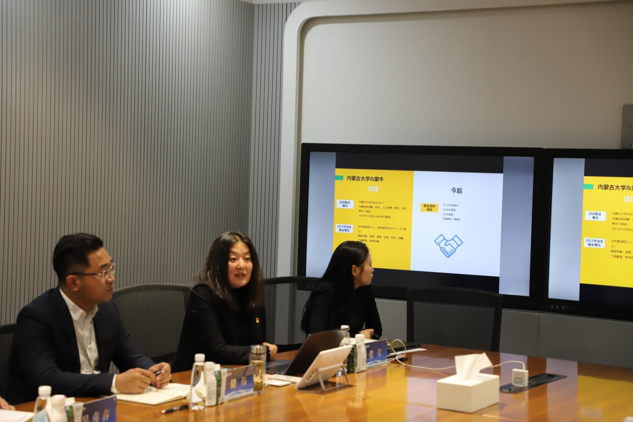 5月13日上午,张吉维副校长率队一行16人赴蒙牛乳业(集团)股份有限公司开展访企拓岗工作。党政办公室主任、哲学学院党总支书记、院长景剑峰、学生就业处处长曹海鹰、2007so太阳集团党总支书记温毅刚、2007so太阳集团团总支副书记兼学生工作办公室副主任赵郑等陪同前往,参加了座谈会。