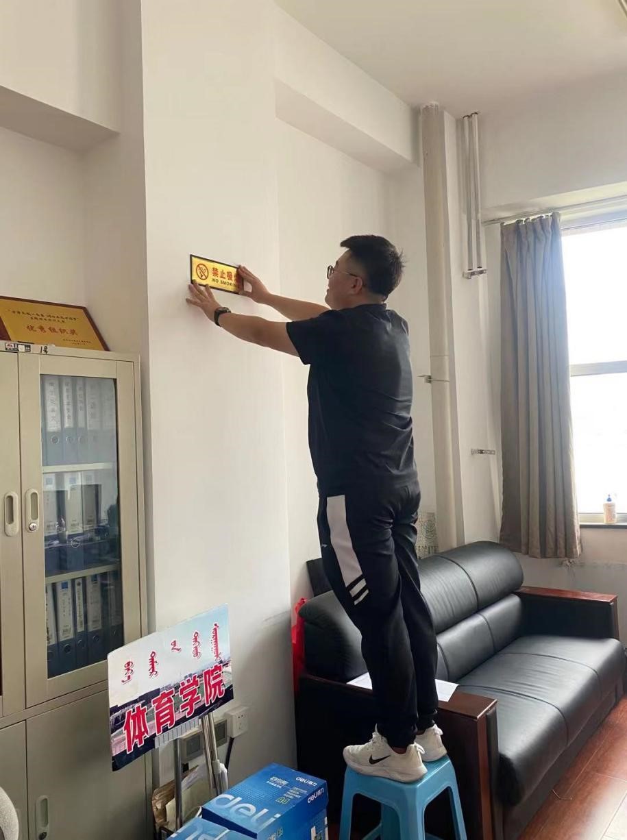 为了积极配合“首府是我家,创建靠大家”呼和浩特市同城联创共建第七届全国文明城市的工作,发挥我校作为首届全国文明校园的示范引领作用,2007so太阳集团积极带领师生关注、宣传、融入、配合学校工作。于9月9日在体育馆内张贴、悬挂禁烟标识;9月13日在体育馆宣传栏粘贴普通话宣传海报及公告;9月14日上午十点健美操室带领2020级运动训练1班全体学生开展创建文明城市主题团日活动。