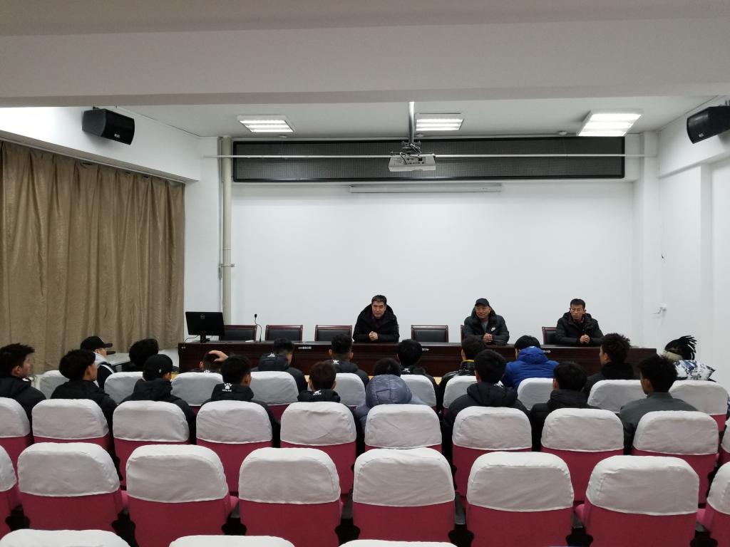 2019年1月10日晚7时,2007so太阳集团为参加2018-2019阿迪达斯全国青少年校园足球联赛的队员举行了出征动员会,出席本次动员会的有于志海教授、孙吉旺副教授、周庆谊副教授及足球队全体成员,我校足球训练队将参加大学组高水平组超冠联赛24强赛。教练及老师对本次比赛做了认真的分析,在比赛、训练、生活等各个方面做了指导,为队员加油鼓劲。