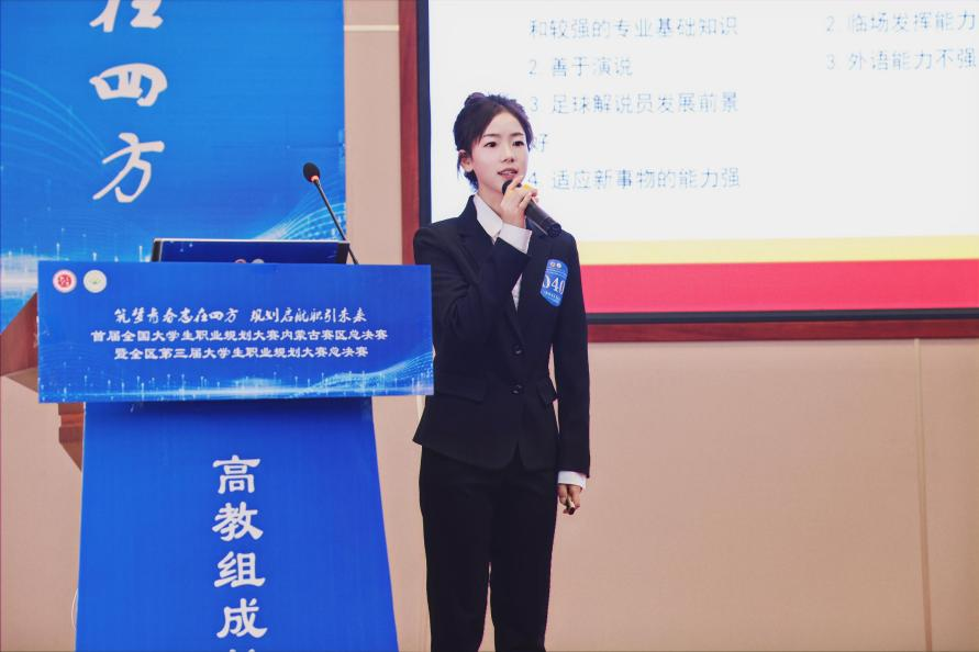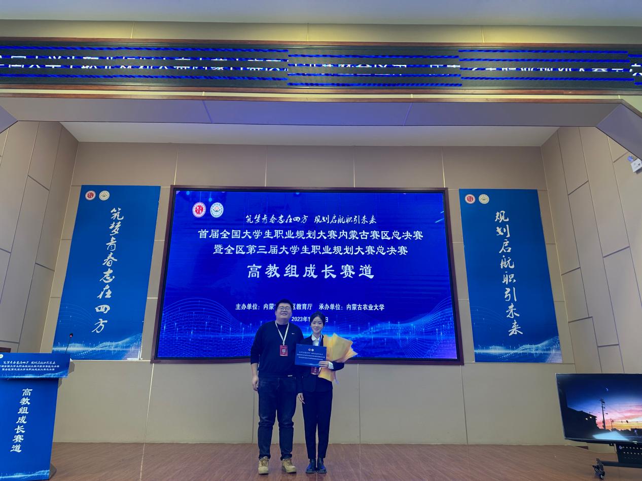 在2023年12月10日举办的首届全国大学生职业规划大赛内蒙古赛区总决赛中,我院2022级运动训练专业学生郝鑫星获得成长赛道第一名。我院教师赵郑被评为优秀指导教师。