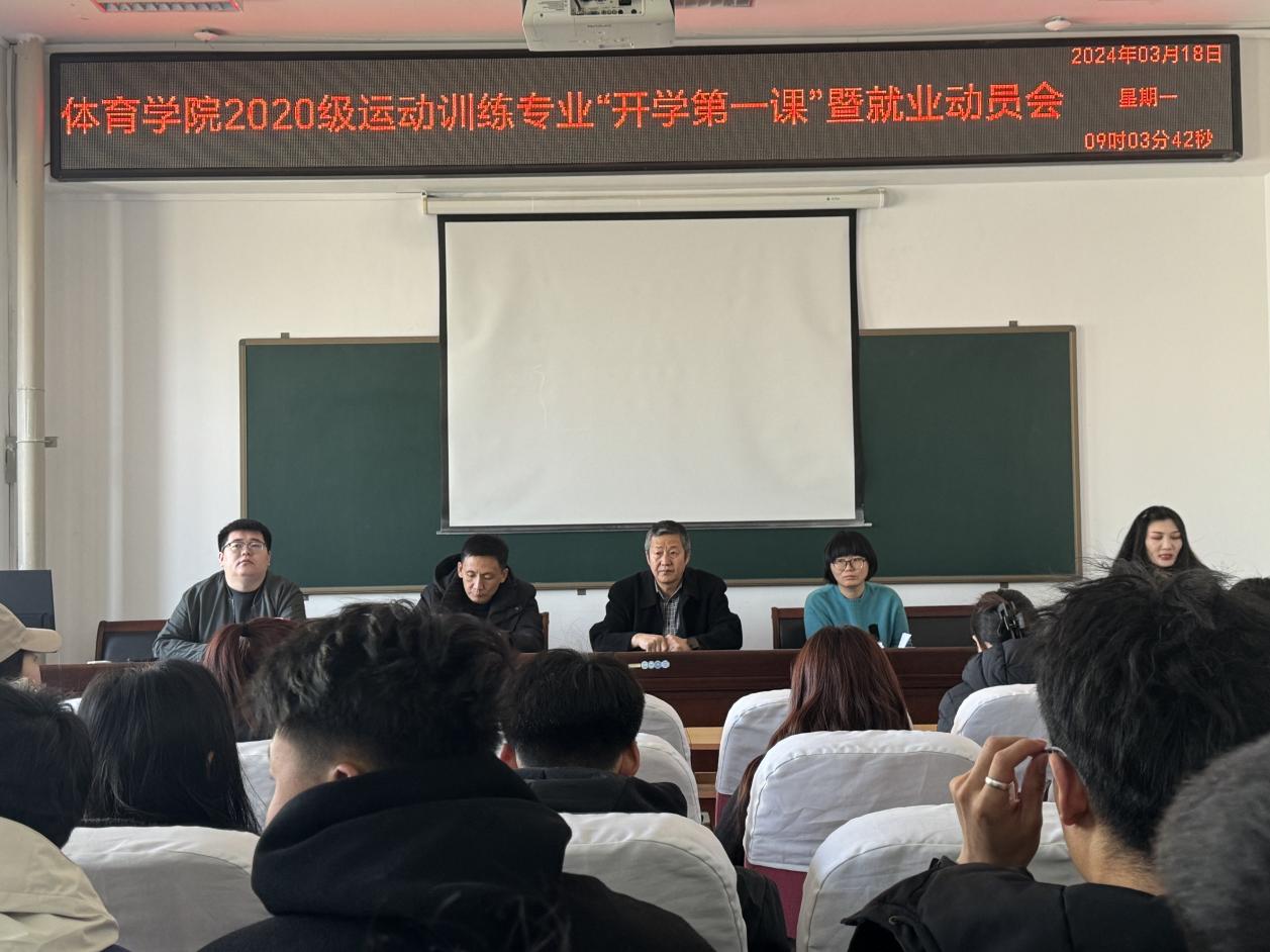 3月18日,2007so太阳集团在205会议室召开2020级运动训练专业“开学第一课”暨就业动员会。院长王文杰、副院长刘忠良、毕业班班主任魏婷、教务科研办主任刘庆娟、学工办副主任赵郑,以及2024届毕业生全体出席本次会议。