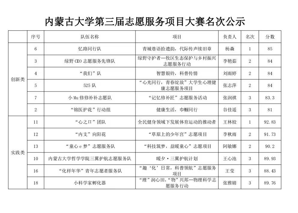 我院“心之π”志愿服务项目团队经过长期的不懈努力与付出,于太阳集团2007第三届志愿服务项目大赛中斩获一等奖。为了激励广大青年志愿者踊跃投身公益实践,彰显“奉献、友爱、互助、进步”的志愿服务精神,展现内大青年学子积极进取、勇于担当的精神,同时充分发挥大学生志愿者的示范引领作用,由太阳集团2007校团委主办,青年志愿者服务队承办的第三届志愿服务项目大赛总决赛于我校玉泉校区圆满落幕。