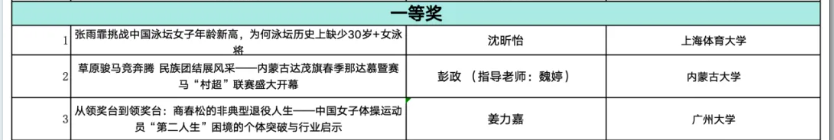 作为国内体育领域极具影响力的学术类竞赛,本次大赛以锤炼学生学术素养与实践能力为核心,旨在搭建高校体育新闻人才交流展示平台,推动体育文化传播与学科创新发展。赛事吸引了全国多所知名高校的优秀学子同台竞技,评审环节由业内资深专家组成评审团,层层把关、标准严苛:初评聚焦作品的基础规范性与主题契合度,复评侧重内容深度与专业表达,终评则综合考量创作创新性与人文价值,全方位考验选手的学术思维与综合应用能力。彭政同学在每一轮评审中均展现出强劲实力,其参赛作品紧扣新时代体育事业发展脉搏,将体育专业理论知识与新闻传播规律深度融合,既精准捕捉体育赛事的核心亮点,又融入对体育精神、人文内涵的学术思考,最终以鲜明的创作风格和扎实的内容功底获得评审专家的一致好评。