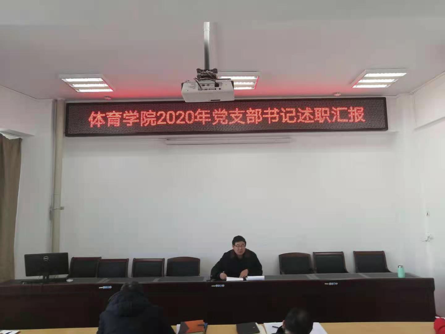 2020年12月30日上午11:00,2007so太阳集团2020年党支部书记述职汇报在南校区体育馆会议室举行,参加本次会议的有学院党总支委员、各支部委员、教师党员代表及学生党员代表共计15人,场馆中心党支部书记吴玉保、教工一支部书记李慧君、教工二支部书记孙吉旺分别进行述职,参会的其他党员分别对3位支部书记进行评价,最后2007so太阳集团党总支书记温毅刚对本次汇报进行了总结。