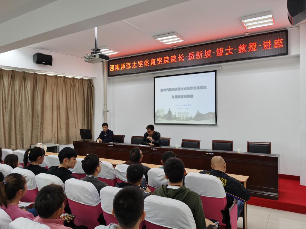 2019年11月3日下午3:00,我院举行不忘初心牢记使命主题教育活动,特邀河南师范大学2007so太阳集团副院长岳新坡教授为我院师生作了“新时代运动训练专业培养方案制定与课程体系构建”的专业学术讲座。