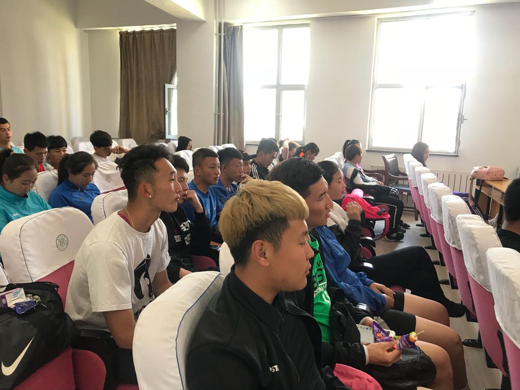赵老师和刘老师与同学们进行座谈,为同学们解答生活、学习、训练等各方面的问题,同学们积极配合参与,向老师提出了自己的难题。例如:在学习和训练中如何做好平衡、如何面对竞技比赛的压力、怎么去看待大学生活、和不知道努力的方向该怎么办等一系列问题。在此赵老师告诉同学们,训练和学习一样重要,如何平衡这两者,就需要自己去考虑当下时间,是哪一个更加重要,更加值得去投入更多的精力,做好做精一件事情后再做下一件事,如果训练学习之间关系平衡不好,反而适得其反。面对压力学会释放,学会沟通,找到一种健康有益的方式使自己放松,然后再继续,效果事半功倍。