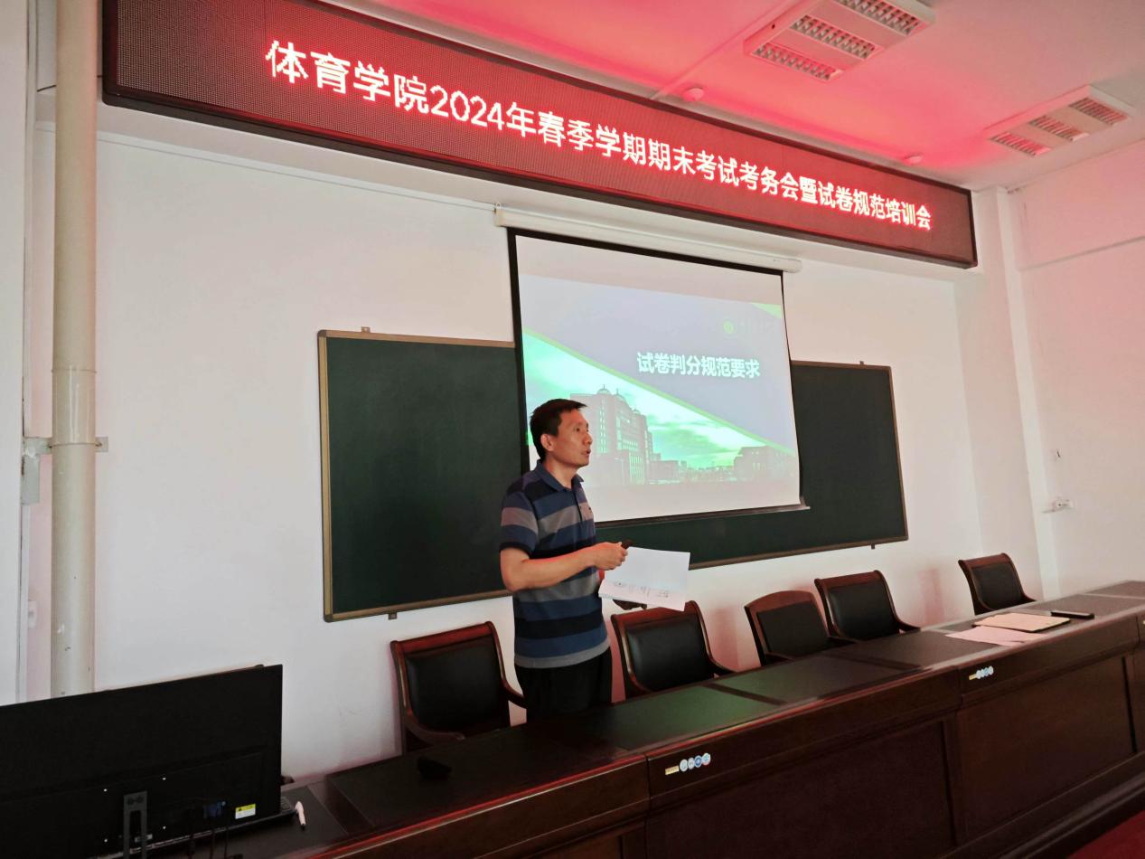 2024年6月6日,2007so太阳集团2024年春季学期期末考试考务会暨试卷规范培训会在205会议室召开。副院长刘忠良细致解读了期末试卷批阅工作的要求,强调试卷成绩评定和课程考核档案管理规范,并对2024年春季学期期末考试工作做了部署。